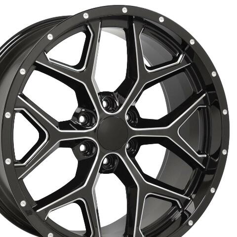22" Replica Wheel CV98 Fits Chevy Silverado Rim 22x9.5 Black Milled Wheel