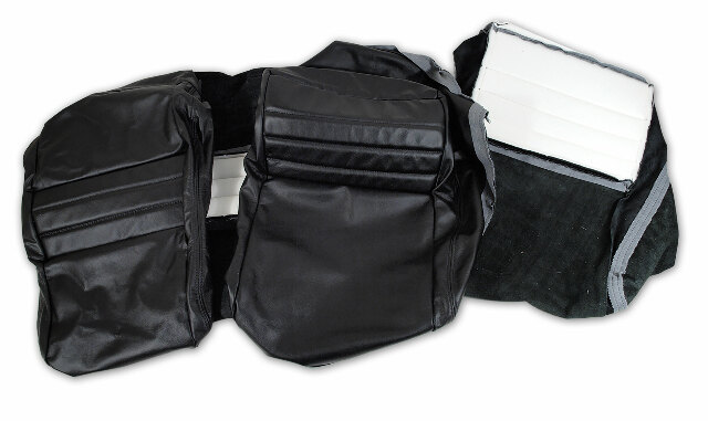 Sets include 2 backs and 2 bottoms. Manufactured in 100% Leather with Leather inserts and Leather skirts, Designed to be a premium upgrade to the original Leather- Vinyl Seat Covers.