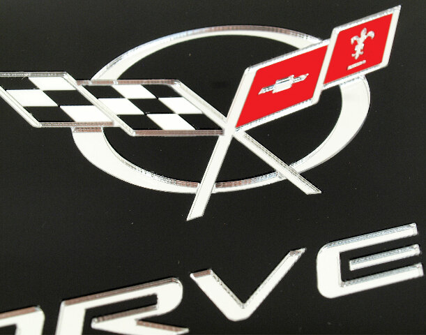 Front License Plate Blk W/Mirrored C5 Logo & Script For 1997-2004 Corvette by CA.