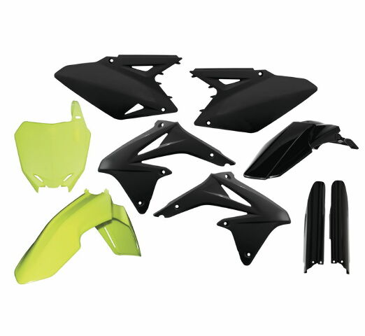 Full kit includes front fender, rear fender, front number plate, lower fork cover set, radiator scoops and side panels
