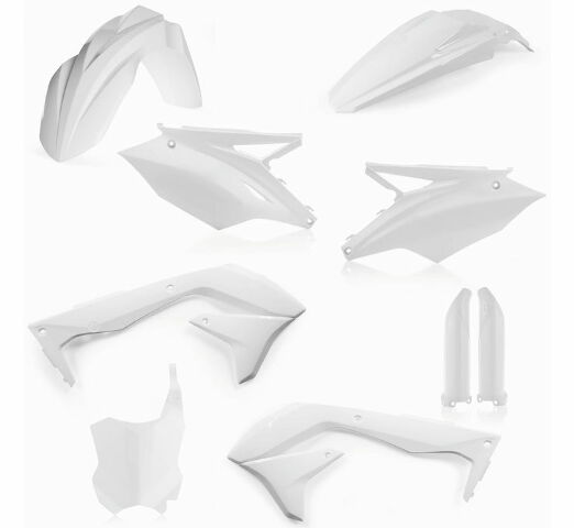 Full kit includes front fender, rear fender, front number plate, lower fork cover set, radiator scoops and side panels