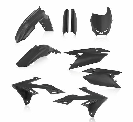 Full kit includes front fender, rear fender, front number plate, lower fork cover set, radiator scoops and side panels