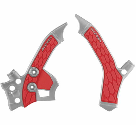 A frame guard that allows the rider to both protect the frame of the motorcycle from wear as well as adding more grip to the bike, to hold onto. Outer plastic is durable polycarbonate while the inner plastic is durable yet pliable and offers incredible grip.