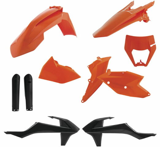 Full kit includes front fender, rear fender, front number plate, lower fork cover set, radiator scoops and side panels