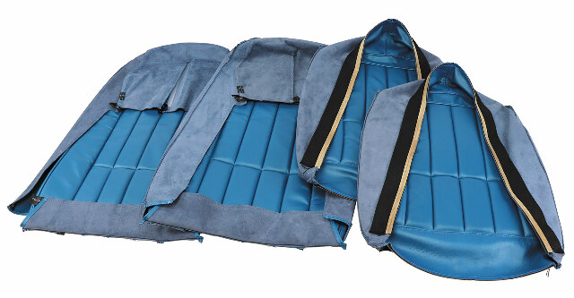 1968-1969 Seat Covers are 100% Leather as original. 1970-1982 Seat Covers are available in your choice of Exact Reproduction Leather/Vinyl Combination or in 100% Leather. All sets include 2 backs and 2 bottoms.