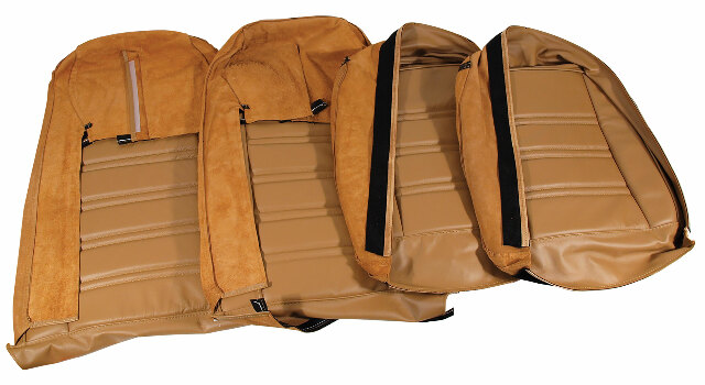 1968-1969 Seat Covers are 100% Leather as original. 1970-1982 Seat Covers are available in your choice of Exact Reproduction Leather/Vinyl Combination or in 100% Leather. All sets include 2 backs and 2 bottoms.