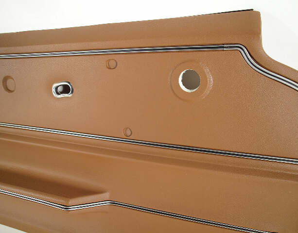 Latest Improvements! - Correctly Contoured Felts - Pre-Cut Vent Window Crank Openings - Softer Feel - New Upper Supports Corvette America's 1965-1967 Corvette Deluxe Door Panels arrive complete with pre-installed Metal Upper Supports as original, Upper Door Trim, Armrest Trim Strip, Door Opening Bezel and Felt, all professionally mounted on correct reproduction door panel backs. So they look great, fit right and match the original interior color. Note: Colors shown are approximations to assist you in determining your interior color. Request actual material samples to ensure the best color match.