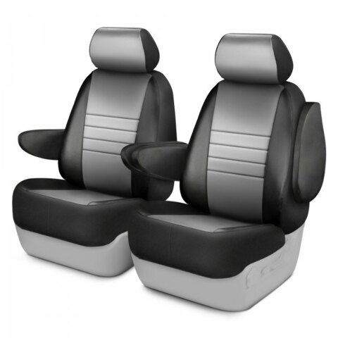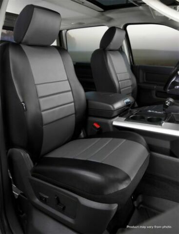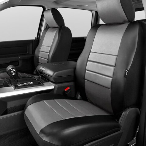 LeatherLite™ Series 1st Row Black & Gray Seat Covers (SL67-69 GRAY) by Fia®. 50/50 Buckets, with Adjustable Headrests, with Side Airbags. Soft touch simulated leather custom fit truck seat covers. Advanced design creates a dynamic state-of-the-art custom interior. Engineered to meet or exceed vehicle manufacturer standards.
