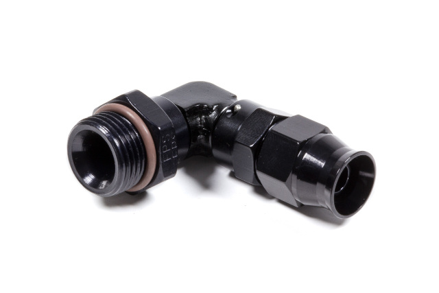 Fitting - Hose End - Real Street - PTFE Hose - 90 Degree - 6 AN Hose to 8 AN Male O-Ring - Aluminum - Black Anodized - Each