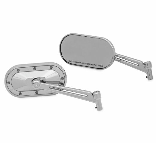 The rugged and industrial design of our Heavy Industry Mirrors is ideal for minimalist riders seeking gritty style paired with pure form and function. Offered in four finish configurations: Chrome, Satin Black, Chrome with Satin Black, and Satin Black with Chrome.