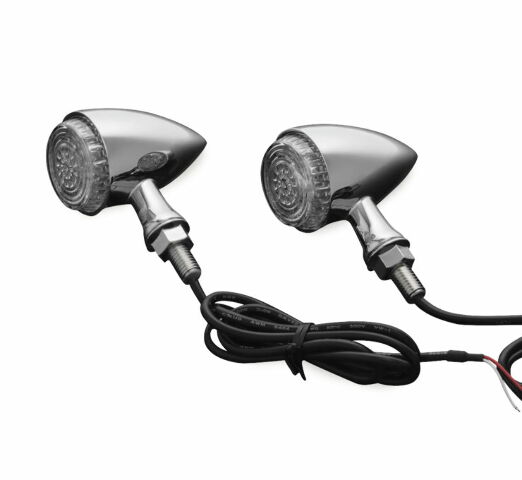 The ECE-approved Torpedo Lights combine both style and function in one. Single-function amber versions are designed to serve as turn signal indicators up front. Multi-function versions are designed for rear use only and feature three independent red and amber circuits that allow the units to serve as Run-Turn-Brake lights.