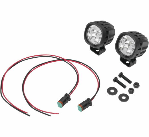 Kit includes two lamps with sealed connectors, wiring pigtails and integrated mount brackets with M8 x 1.25 fasteners