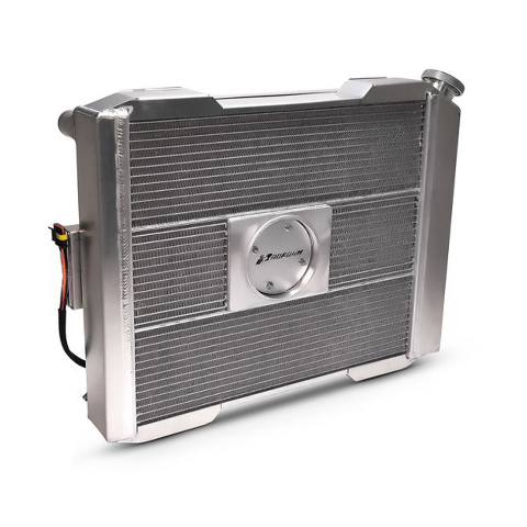 Radiator - Slim-Fit Universal Series - 23-13/32 in W x 18-1/2 in H x 4 in D - Single Pass - Passenger Side Inlet - Driver Side Outlet - Aluminum - Natural - Manual Transmission - Each