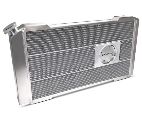 Radiator - Slim-Fit Direct Fit Series - 31-13/64 in W x 16-51/64 in H x 4 in D - Single Pass - Driver Side Inlet - Passenger Side Outlet - Aluminum - Natural - Manual Transmission - GM A-Body 1968-77 - Each