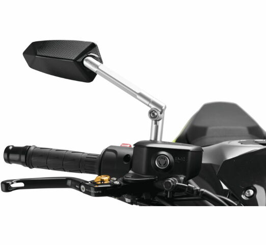 Machined from an anodized billet aluminum block. Designed under the Puig Hi-Tech parts parameters with anti-glare glass for clear vision. Adjustable angle and height thanks to its ball and socket joint system. Adaptable to the mirror's rod or to the original fairing of the motorcycle using adaptors.