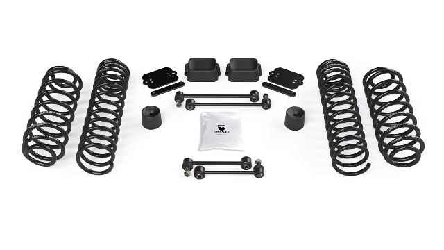 The ultra-simple TeraFlex JL 2 Door 2.5 inch Coil Spring Base Lift Kit comes with the basic parts needed to fit larger tires for increased ground clearance for better off-road capability without compromising on road handling.